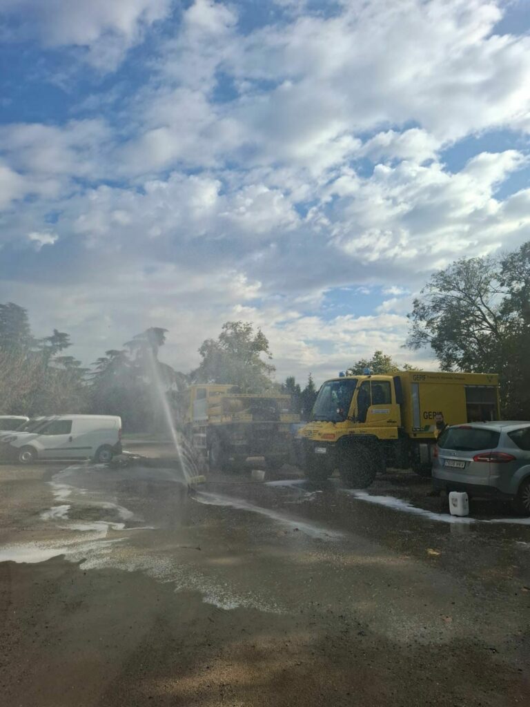 The main objective was to showcase, under controlled real-world conditions, the performance of two key solutions from our Integral Safety Kit: the FS1 – Self-Protection Nozzle and the FS2 – Collective Fire-Resistant Shelter.